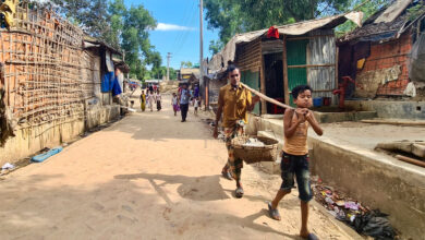 “I am a widow, and I live with my son in a dilapidated house. But what shall we do? We cannot return to Bhola, our land was washed away,” Salme say summing up her predicament. At least there is work in nearby Gulshan, but their situation remains precarious.