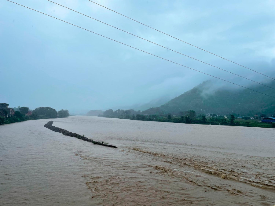 A view of swollen Rapti river following continuous rainfall, seen from Bhalubang in ward 1 of Rapti Rural Municipality, Dang, on Tuesday. RSS