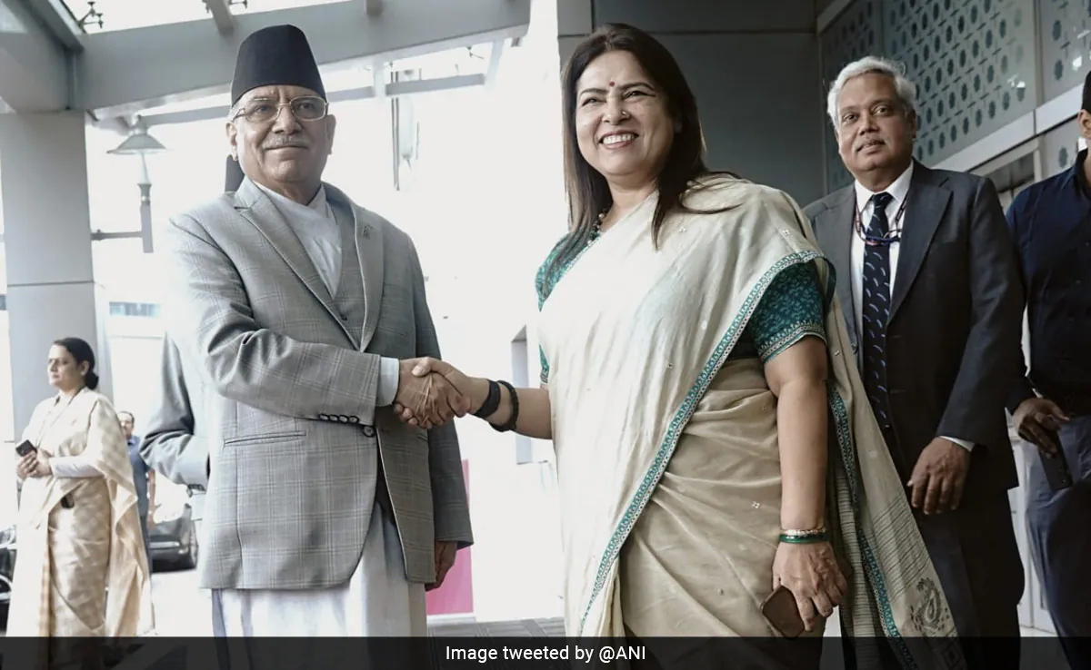New Delhi: Kickstarting his four days India visit, Nepal Prime Minister Pushpa Kamal Dahal ‘Prachanda’ arrived in New Delhi on Wednesday. Upon arrival, he received a warm welcome from Union Minister Meenakashi Lekhi.