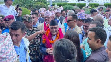 Prime Minister Oli arrives in hometown